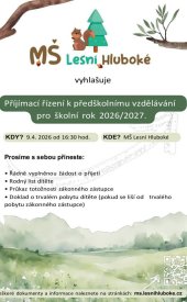 Přijímací řízení k předškolnímu vzdělávání pro školní rok 2026/2027