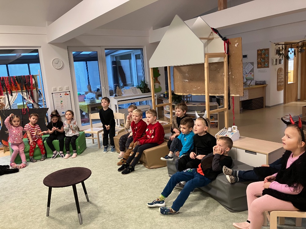 Tříkrálové koledování Čertovský týden Týdenní téma: Zvířátka a jejich skrýše Kouzelnické vystoupení Sv. Martin v MŠ Dýňování Sázení školní zahrady Podzimní výzdoba podle dětí Návštěva dálniční policie Výlet hrad Veveří Loučení se zimou, přivítání jara Muzikoterapie Návštěva knihovny Dudáci Tryhuci-veverky Prostory školky